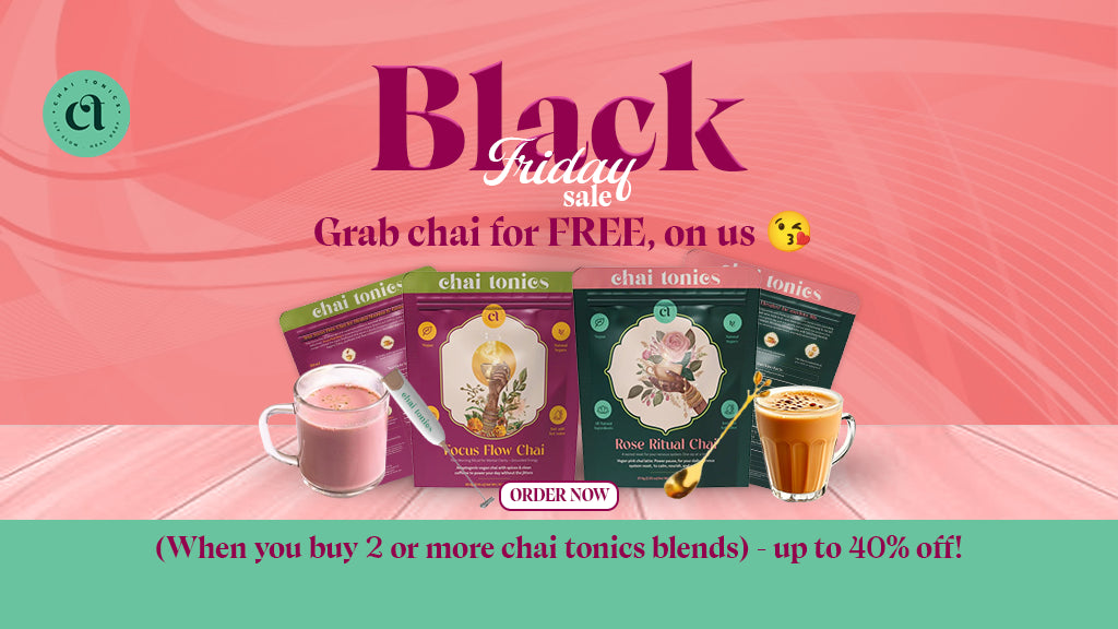 I turned to the rituals of my childhood, and the wisdom of ancient Ayurveda. What I craved? A chai that didn't just taste good, but healed. Chai Tonics was born out of that craving: A soul-soothing sip to support your nervous system, conquer the daily chaos, balance burnout, and give permission to pause.