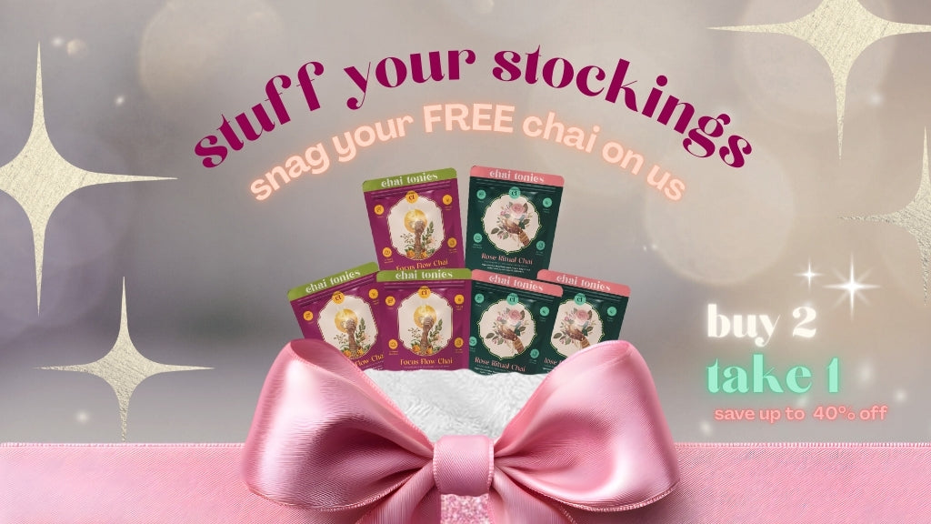 I turned to the rituals of my childhood, and the wisdom of ancient Ayurveda. What I craved? A chai that didn't just taste good, but healed. Chai Tonics was born out of that craving: A soul-soothing sip to support your nervous system, conquer the daily chaos, balance burnout, and give permission to pause.